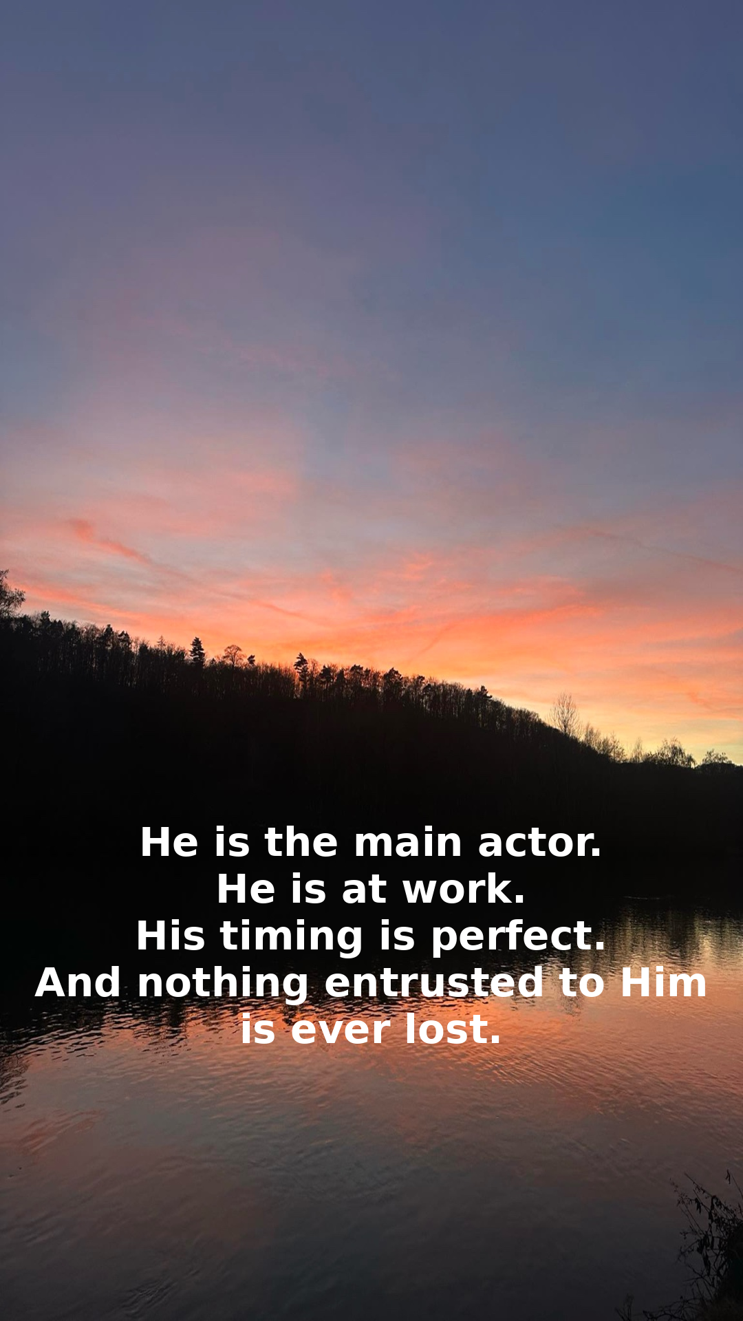 He is the main actor. He is at work. His timing is perfect. And nothing entrusted to Him is ever lost.